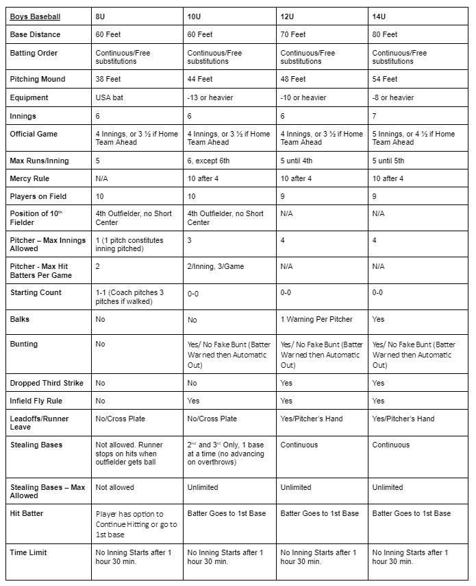 Lemont Baseball and Softball Club has adopted the PONY standard rules and subsidized them with the additional rules provided. Please review the cliff notes version below. If you have any questions, please reach out to the LBSC Board of Directors.